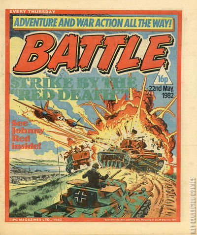 Home / IPC Magazines / Battle / Battle #22 May 1982 368 IPC Magazines Released May 1982 Battle #22 May 1982 368 Add to Collection Want It Synopsis No synopsis available. Add to Collection Buy it on eBay Buy on eBay Low $1 Mid $2 High $3 Synopsis No synopsis available. Details Series Battle Cover Date May 1982 Pages N/A UPC N/A Cover Price N/A Final Orders Cutoff N/A Creators No creators listed. Price Guide Log in or subscribe to access detailed graded price information and market insights. Log In Subscribe