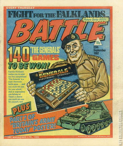 Home / IPC Magazines / Battle / Battle #25 September 1982 386 IPC Magazines Released September 1982 Battle #25 September 1982 386 Add to Collection Want It Synopsis No synopsis available. Issue 93 of 116 Add to Collection Buy it on eBay Buy on eBay Low $1 Mid $2 High $3 Synopsis No synopsis available. Details Series Battle Cover Date September 1982 Pages N/A UPC N/A Cover Price N/A Final Order Cutoff N/A Creators No creators listed. Price Guide Log in or subscribe to access detailed graded price information and market insights. Log In Subscribe