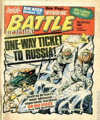 Home / IPC Magazines / Battle / Battle #5 February 1983 405 IPC Magazines Released February 1983 Battle #5 February 1983 405 Add to Collection Want It Synopsis No synopsis available. Add to Collection Buy it on eBay Buy on eBay Low $1 Mid $2 High $3 Synopsis No synopsis available. Details Series Battle Cover Date February 1983 Pages N/A UPC N/A Cover Price N/A Final Orders Cutoff N/A Creators No creators listed. Price Guide Log in or subscribe to access detailed graded price information and market insights. Log In Subscribe