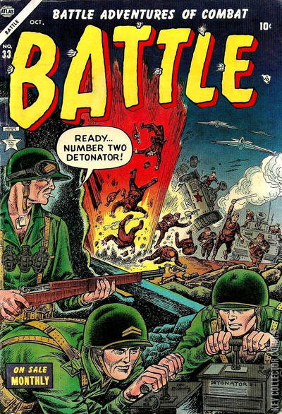 Home / Marvel / Battle / Battle #33 Marvel Released October 1954 Battle #33 Add to Collection Want It Synopsis No synopsis available. Issue 33 of 70 Add to Collection Buy it on eBay Buy on eBay Low $25 Mid $75 High $255 Synopsis No synopsis available. Details Series Battle Cover Date October 1954 Pages N/A UPC N/A Cover Price N/A Final Order Cutoff N/A Creators No creators listed. Price Guide Log in or subscribe to access detailed graded price information and market insights. Log In Subscribe