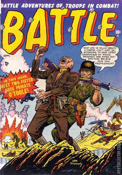 Home / Marvel / Battle / Battle #4 Marvel Released September 1951 Battle #4 Add to Collection Want It Synopsis No synopsis available. Issue 4 of 70 Add to Collection Buy it on eBay Buy on eBay Low $15 Mid $50 High $165 Variants Canadian Synopsis No synopsis available. Details Series Battle Cover Date September 1951 Pages N/A UPC N/A Cover Price N/A Final Order Cutoff N/A Creators No creators listed. Price Guide Log in or subscribe to access detailed graded price information and market insights. Log In Subscribe