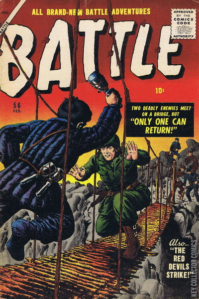 Home / Marvel / Battle / Battle #56 Marvel Released February 1958 Battle #56 Add to Collection Want It Synopsis No synopsis available. Issue 56 of 70 Add to Collection Buy it on eBay Buy on eBay Low $18 Mid $55 High $185 Synopsis No synopsis available. Details Series Battle Cover Date February 1958 Pages N/A UPC N/A Cover Price N/A Final Order Cutoff N/A Creators No creators listed. Price Guide Log in or subscribe to access detailed graded price information and market insights. Log In Subscribe