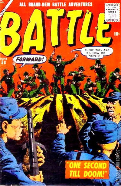 Home / Marvel / Battle / Battle #58 Marvel Released June 1958 Battle #58 Add to Collection Want It Synopsis No synopsis available. Issue 58 of 70 Add to Collection Buy it on eBay Buy on eBay Low $45 Mid $130 High $425 Synopsis No synopsis available. Details Series Battle Cover Date June 1958 Pages N/A UPC N/A Cover Price N/A Final Order Cutoff N/A Creators No creators listed. Price Guide Log in or subscribe to access detailed graded price information and market insights. Log In Subscribe