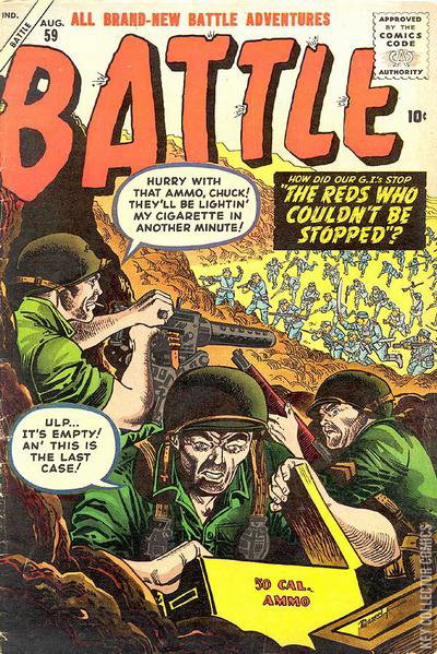 Home / Marvel / Battle / Battle #59 Marvel Released August 1958 Battle #59 Add to Collection Want It Synopsis No synopsis available. Issue 59 of 70 Add to Collection Buy it on eBay Buy on eBay Low $25 Mid $70 High $225 Synopsis No synopsis available. Details Series Battle Cover Date August 1958 Pages N/A UPC N/A Cover Price N/A Final Order Cutoff N/A Creators No creators listed. Price Guide Log in or subscribe to access detailed graded price information and market insights. Log In Subscribe