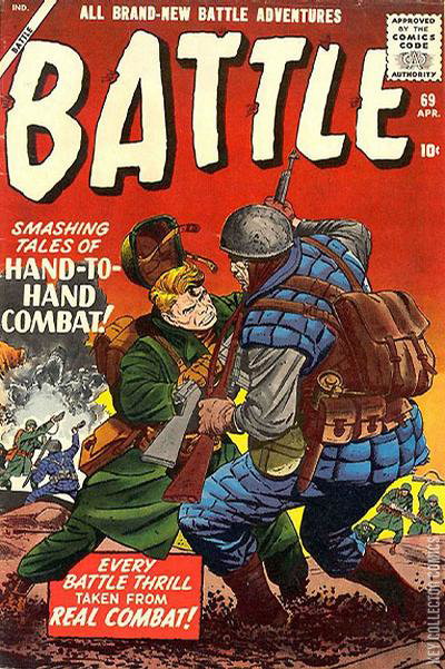 Home / Marvel / Battle / Battle #69 Marvel Released April 1960 Battle #69 Add to Collection Want It Synopsis No synopsis available. Issue 69 of 70 Add to Collection Buy it on eBay Buy on eBay Low $45 Mid $140 High $465 Synopsis No synopsis available. Details Series Battle Cover Date April 1960 Pages N/A UPC N/A Cover Price N/A Final Order Cutoff N/A Creators No creators listed. Price Guide Log in or subscribe to access detailed graded price information and market insights. Log In Subscribe