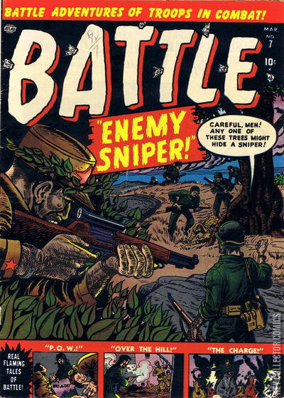 Home / Marvel / Battle / Battle #7 Marvel Released March 1952 Battle #7 Add to Collection Want It Synopsis No synopsis available. Issue 7 of 70 Add to Collection Buy it on eBay Buy on eBay Low $15 Mid $45 High $150 Synopsis No synopsis available. Details Series Battle Cover Date March 1952 Pages N/A UPC N/A Cover Price N/A Final Order Cutoff N/A Creators No creators listed. Price Guide Log in or subscribe to access detailed graded price information and market insights. Log In Subscribe