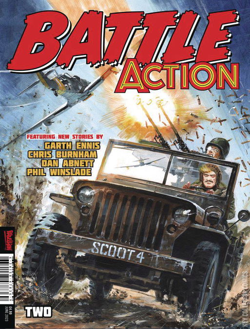 The new series of Battle Action continues with the return of Crazy Keller from Garth Ennis and Chris Burnham, as Keller finds himself in the aftermath of WWII dealing with the legacy of the Nazis and their indoctrinated soldiers. Also in this issue, Dan Abnett and Phil Winslade tell the story of D-Day Dawson, the soldier whose mortal wound spurs him on to heroic deeds, as he stands against overwhelming odds to defend innocent French civilians from encroaching German forces.