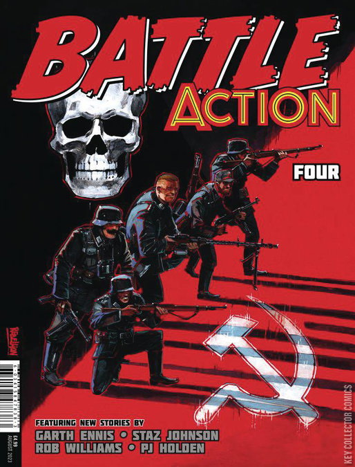 The penultimate issue contains two all-new tales of ordinary soldiers performing heroic acts of bravery under extreme conditions! On the bloody battlefield of Anzio, Italy, a raw 18-year-old soldier, Jim Miller, must devote every waking moment to ensure that Cooley's Gun keeps firing in order to stave off the relentless Nazi assault, written by Garth Ennis and Staz Johnson. On the Eastern Front the Death Squad are sent on a do-or-die mission to go behind Russian lines in order to rescue a Field Marshal's son and are faced with a difficult decision when they find him, written by Rob Williams and drawn by PJ Holden.