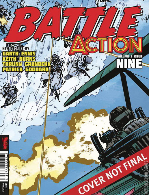 Johnny Red: A Couple of Heroes reaches its penultimate episode as Nina struggles to save the crew of the Flying Gun, Johnny meets his nemesis in one last dogfight high above the Arctic Ocean. Written by Garth Ennis and drawn by Keith Burns. Also in this issue: how did Dredger become the stone-cold special agent that everyone fears and only a mother could love? Find out in this brutal tale from Ennis and John Higgins.