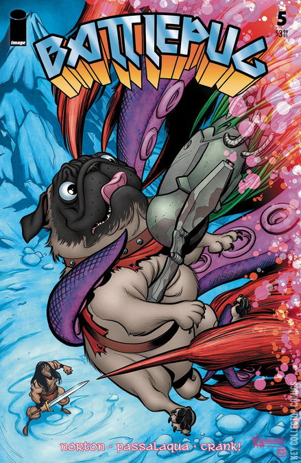 END OF STORY ARC "WAR ON CHRISTMAS," Part Five The Queen of the Northland Elves has found a dangerous new weapon and she isn't afraid to use it! The last Kinmundian, his battlepug, and all their friends must stop her before she conquers our universe (and others)! Don't miss the stunning conclusion of this story arc that promises to completely change the world of BATTLEPUG as we know it!