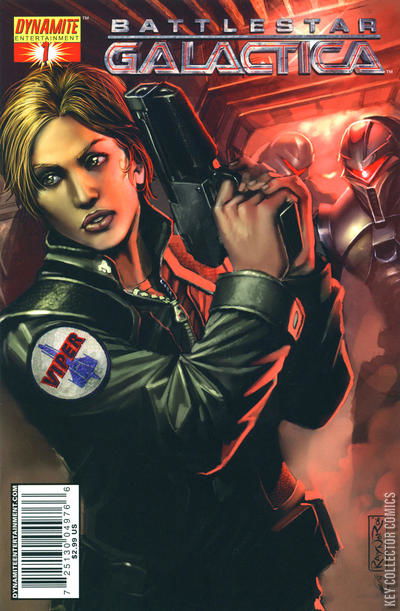 The biggest comic book event of 2006 begins here as Dynamite Entertainment launches the all-new, Battlestar Galactica comic book series based on the all-new "re-imagined" Battlestar Galactica on SCIFI!! Picking up from the final pages of the best-selling #0 issue, Battlestar Galactica #1 features the ongoing creative team of writer Greg (Planet Hulk) Pak and Nigel Raynor! Joining the inside team we have the all-star team of cover artists Michael Turner with colorist extraordinaire Peter Steigerwald, Billy (Uncanny X-Men) Tan and Nigel Raynor; plus, a special photo cover showcasing the cast of BSG! Our story focus on an "untold tale" taking place in between seasons of the popular show and the return of characters not seen since the smash mini-series that re-launched Galactica to critical acclaim. Don't miss out and don't forget to ask your local retailer about the special incentive covers!