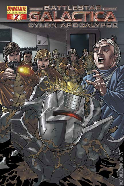 DYNAMITE ENTERTAINMENT presents an all-new, Battlestar Galactica event featuring the DYNAMITE Debut of Javier Grillo-Marxuach (ya know, the guy behind such hit shows as Lost and Medium) as he unleashes the Cylon Apocalypse! After the events of last issue, in which the classic crew of the Battlestar Galactica discovered a new path to Earth, Adama decides on a course of action to take the battle to the Cylons and unleash his own Apocalypse on humanity's greatest enemies. Plus: Cylons invade the Galactica! Grillo-Maruach is joined by Battlestar artist Carlos Rafael, along with colorist Carlos Lopez for this special comic book event! Featured covers artists include: the master of all things time and space Jim Starlin, Michael Golden, the modern master Pat Lee, and colonial warrior Carlos Rafael! Don't miss it!
