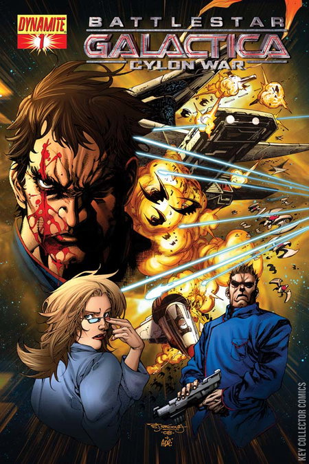 Before the time of mankind's exodus from the twelve colonies (as told in the current award winning Battlestar Galactica series on SCI FI) and the returned menace of the Cylons, a war was fought between man and machine. A story that has never before been told, until now…. Now, Dynamite Entertainment is proud to present the CYLON WAR mini-series event, from writers Joshua (Frank Frazetta's Death Dealer) Ortega and Eric (Halo) Nylund, Galactica veteran artist Nigel Raynor and cover artists Stephen (Wolverine) Segovia (50%) and Nigel Raynor (50%) Fully authorized by Sci Fi and the show producers, the world of Galactica and the first "apocalypse" with the Cylons is explored here as only Dynamite can! 48 pages total featuring eight pages of production art and script excerpts!