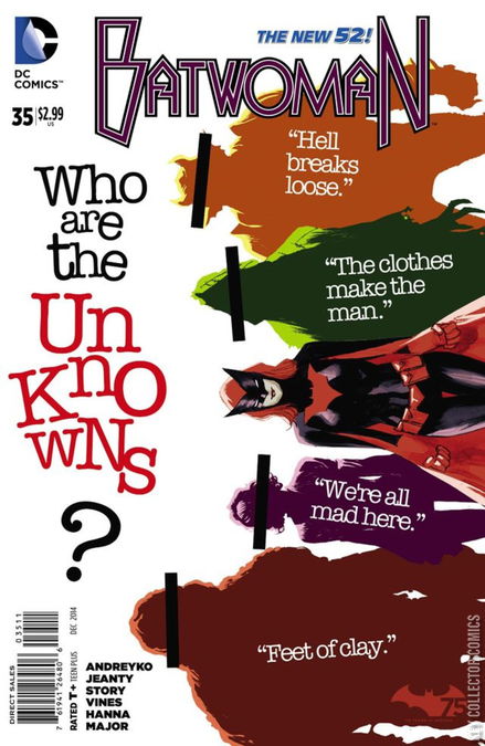 MYSTERY IN SPACE Flying well in the face of her expectations of what becoming a costumed vigilante would be like, Batwoman is in space. She and her team of misfits are desperate to defend a satellite from an attack by Morgan le Fay, and her Demons. Using an enchanted stone, Morgan le Fay hopes to use the satellite to make New Camelot hers alone. In defending herself against Batwoman's attacks, Morgan cracks a hole in Red Alice's protective helmet, threatening to depressurize and cause her to suffocate and freeze. Worriedly, Batwoman drags her unconscious body to Ragman, begging him to use his Suit of Souls to preserve her soul while Kate protects her body. Rory reminds that his suit only takes evil souls - and Kate must admit that her sister has done a great deal of evil, when the suit takes her. In the meantime, Clayface and Etrigan continue to try to prevent Morgan le Fay from getting to the satellite, but the witch steals Etrigan's power and burns the flesh from his bones. She heats Clayface until his arm hardens and crumbles, allowing her at last to affix the stone to the satellite, only to feel Batwoman's thrusting an electrified rod through her back. Grabbing the stone, she and the others make their way back to their shuttle, and try to make it back to Earth before Morgan and her demons recover. As they enter the atmosphere, Batwoman sees that they are burning up, and has Clayface wrap himself around them all, and Ragman use his cloak to add a magical element to that protection, and they hope that they will survive what's to come.