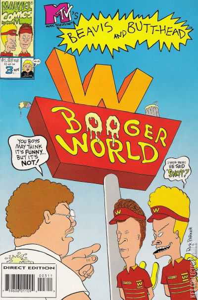 Beavis and Butt-Head demonstrate the patience and understanding necessary to work behind the counter at a fast-food restaurant. Unfortunately, things go awry when a pair of ex-cons are dissatisfied with the food! Also, check out Beavis and Butt-Head's idea of a good April Fools joke."Break-Out at Burger World!""Untitled (Man-Thing)""Untitled (Spider-Man)""Fudge Factory""Potty Pranks"