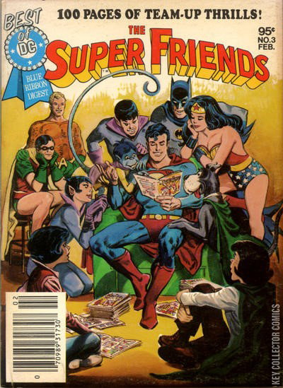 Reprints: "The Cosmic Hit Man?" by E. Nelson Bridwell, Ramona Fradon and Bob Smith from Super Friends #3; "Man, Thy Name is Brother!" by Gardner Fox, Mike Sekowsky and Sid Greene from Justice League of America #57; "Riddles and Rockets!" by E. Nelson Bridwell, Ramona Fradon and Bob Smith from Super Friends #4; "Eye of the Beholder!" by Len Wein, Marv Wolfman and Bill Draut from Teen Titans #18; "The Monster Menace!" by E. Nelson Bridwell, Ramona Fradon and Bob Smith from Super Friends #10