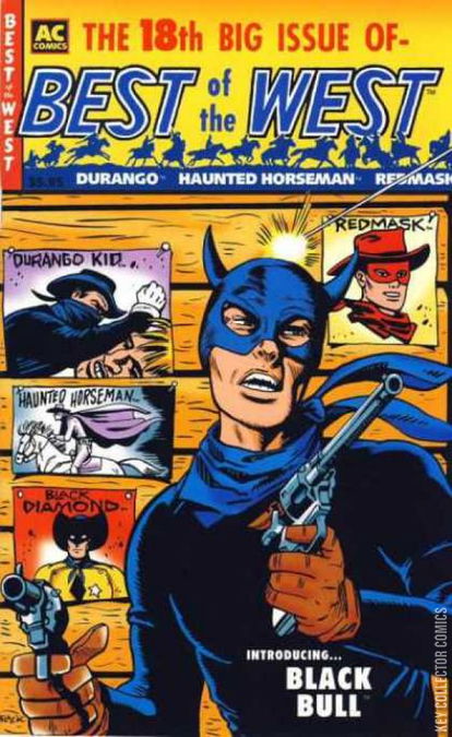 Cover by Bill Black. Stories by unknown. Art by Fred Guardineer, John Severin, Will Elder, Al Luster, Dick Ayers and Frank Bolle. Featuring: The Durango Kid in "War In Wyoming"; Black Bull in "A Meteor Saves the Ranch"; Black Diamond in "Reliapon's Last Race"; American Eagle in "Two-Barrelled Gun"; The Haunted Horseman [Ghost Rider] in "The Coffin of Snow"; Redmask in "The Loot of Texas Jack"!