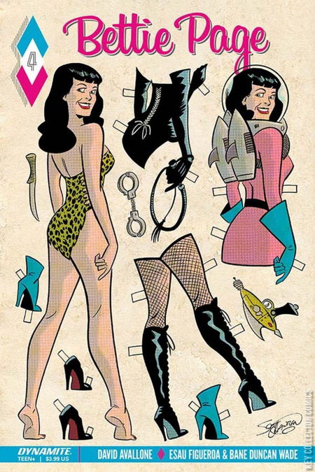 Someone wants to enslave American minds? but who's behind it all? The Sky Science Cult? Pacific AeroSpace Technologies? Ol' Joe Stalin himself? None of them is a match for Bettie Page, as our high-heeled heroine goes toe-to-toe with the worst 1951 has to offer in the fourth and final Hollywood chapter of The Secret Diary of Bettie Page, as revealed by David Avallone and Colton Worley.