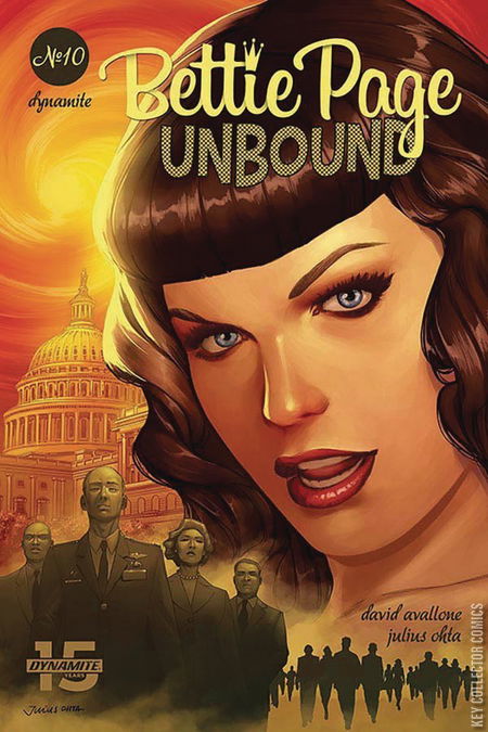The Duplanoids stand ready to take over the planet, and only one lone pinup-model-turned-spy can stop them! The Invasion of the Bettie Snatchers reaches its senses-shattering climax in BETTIE PAGE UNBOUND #10, from writer David Avallone (DRAWING BLOOD/ELVIRA: MISTRESS OF THE DARK) and artist Julius Ohta (SHERLOCK HOLMES.)