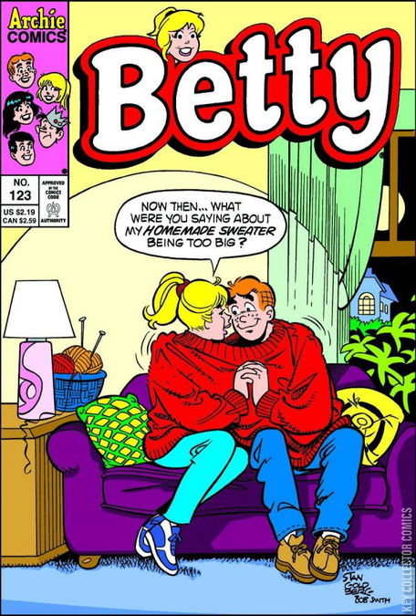 "Add One Cup of Love": Betty's got some hot chocolate, chocolate chip cookies, a warm fireplace, a good book, and the peaceful sound of rain on the roof - if only Archie or Adam were available to share them with her!