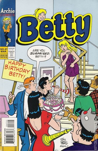 Home / Archie / Betty / Betty #47 Archie Released January 1997 Betty #47 Add to Collection Want It Synopsis No synopsis available. Add to Collection Buy it on eBay Buy on eBay Low $1 Mid $2 High $3 Synopsis No synopsis available. Details Series Betty Cover Date January 1997 Pages 32 UPC 76281646753704711 Cover Price $1.50 Final Orders Cutoff N/A Creators Cover Artist Stan Goldberg Price Guide Log in or subscribe to access detailed graded price information and market insights. Log In Subscribe