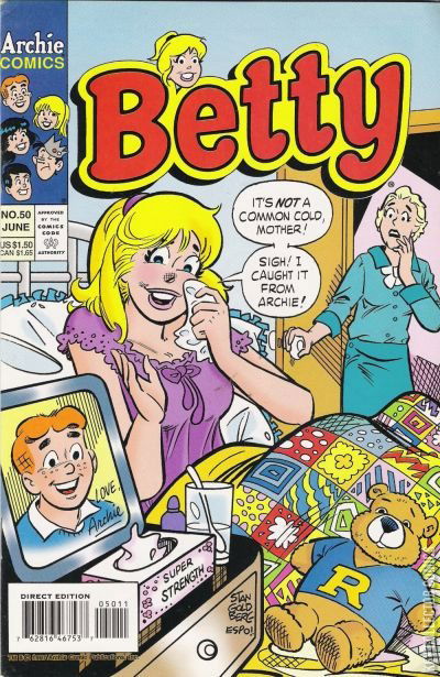 Home / Archie / Betty / Betty #50 Archie Released April 1997 Betty #50 Add to Collection Want It Synopsis No synopsis available. Add to Collection Buy it on eBay Buy on eBay Low $1 Mid $2 High $3 Synopsis No synopsis available. Details Series Betty Cover Date April 1997 Pages 32 UPC 76281646753705011 Cover Price $1.50 Final Orders Cutoff N/A Creators Cover Artist Stan Goldberg Price Guide Log in or subscribe to access detailed graded price information and market insights. Log In Subscribe