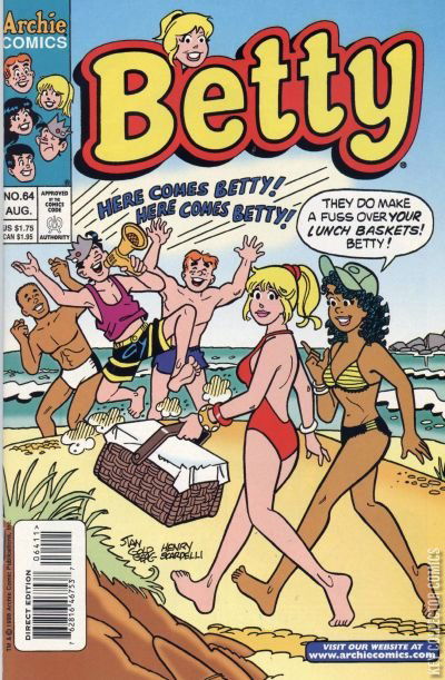 Home / Archie / Betty / Betty #64 Archie Released June 1998 Betty #64 Add to Collection Want It Synopsis No synopsis available. Add to Collection Buy it on eBay Buy on eBay Low $1 Mid $2 High $3 Synopsis No synopsis available. Details Series Betty Cover Date June 1998 Pages 32 UPC 76281646753706411 Cover Price $1.75 Final Orders Cutoff N/A Creators Cover Artist Stan Goldberg Price Guide Log in or subscribe to access detailed graded price information and market insights. Log In Subscribe
