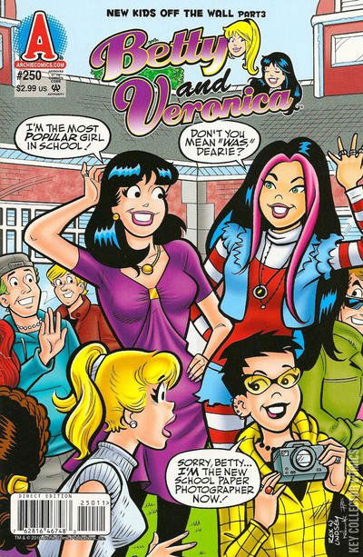"New Kids," Part 3. Continued from Archie #614. New students turn Riverdale High into a "Bizarro" world for Betty and Veronica as a new girl with a flair for design puts Veronica's fashion sense to the test and Betty meets a girl who can go toe to toe in every way. And now, two new gorgeous guys in the student body might just turn the girls' hearts away from Archie!