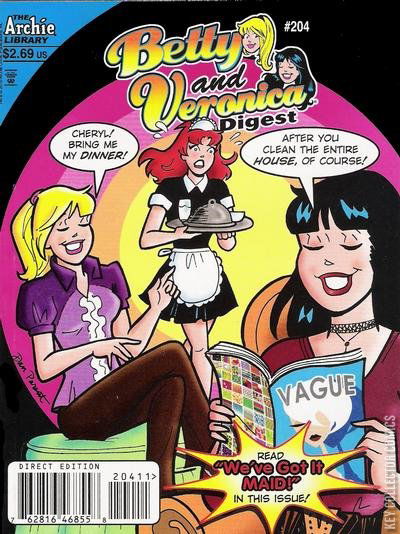 Cheryl Blossom offers "maid service for a day" as part of a charity auction - and Veronica is determined to be the high bidder! As Cheryl toils, will Veronica "clean up" on payback she feels owed, or be more "charitable" in her treatment of Cheryl? Then, Veronica learns that studying isn't all fun and games when comparing study groups with a friend. Plus, puzzles, games, pin-ups, and more!