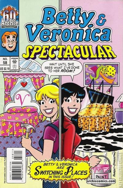 "Switching Places": In this spoof of the popular TV show, "Trading Spaces," Betty and Veronica are given two days each to redecorate each other's bedrooms! But are they just out to makeover their rooms... or makeover each other, too?! You don't need a TV to learn the answer -- just pick up this colossal comic!