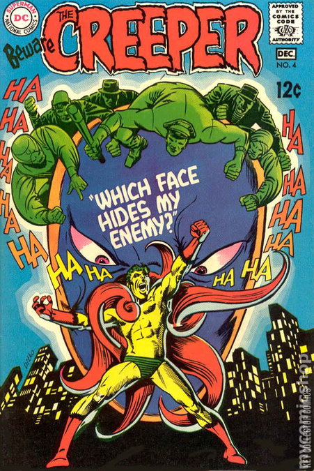 WHICH FACE HIDES MY ENEMY? The Creeper investigates a pair of mysterious visitors from the country of Offalia, who claim that Proteus was their secretary of state and that his appearance-changing abilities were a secret. The Creeper links Proteus with cult leader Yogi Bizerk.