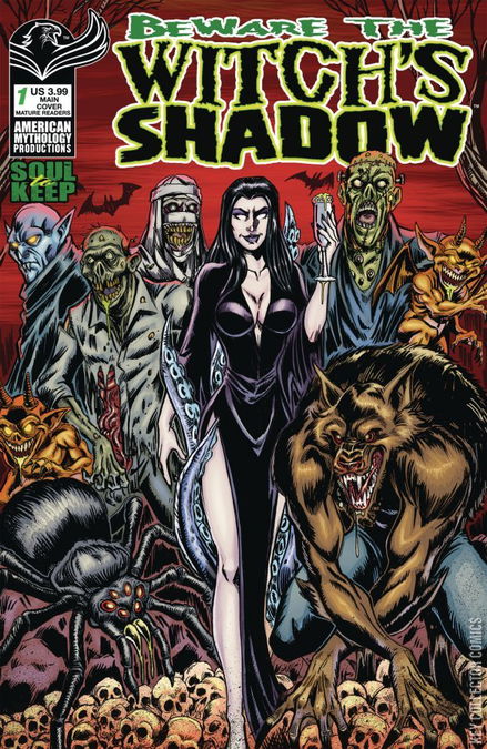 Deep in the darkest woods there's a cabin where monsters dwell and wait for the unlucky to visit. The wisecracking Witch is back with new tales of terror and snarky horror! In this issue we discover that the undead are everywhere, even in the dark reaches of space. And a con man tries to work the system but finds out that one's grip on sanity is indeed a slippery slope. Plus a bonus tale to sink your teeth into! Its beautiful bloody horror in the classic comics vein! Beware the Witch's Shadow Soul to Keep comes with three cover editions - Main by Puis Calzada, Variant by Mike Wolfer, and Risqué cover also by Calzada.