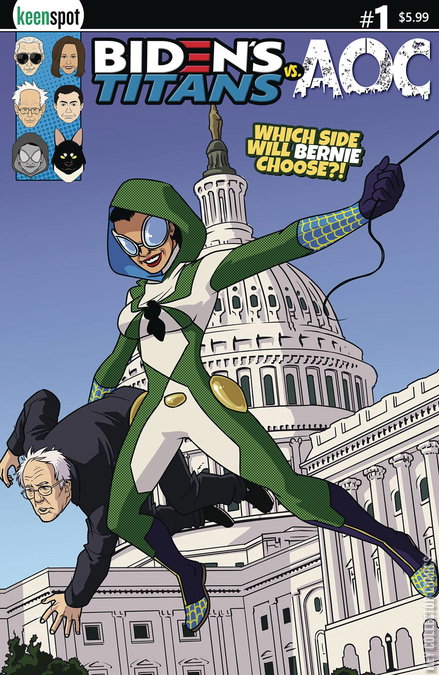 Thanks to the AI-assisted evildoing of billionaire troll Elon Musk, Biden's Titans' most valued teammate AOC has abandoned the supergroup! In this new dark world, AOChaos reigns! Sides are being chosen -which one will Bernie pick? The Biden's Titans saga heads into the Civil War of stupidity in this shocking fifth chapter! Includes bonus pull-out poster!
