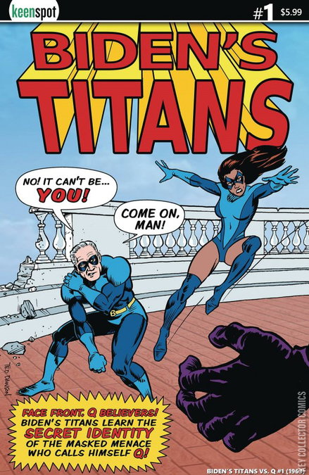 Face front, Q believers! After their bestselling first issue (even outselling Trump's Titans #1 by a tremendous margin, and that's not fake news!), Biden's Titans return in a senses-shattering all-new adventure that finds Joe, Kamala, and Pete so desperate to track down the secret identity of the mastermind known only as Q that they even team up with Bernie Sanders and The Superior AOC! When Joe discovers the truth behind the conspiracy that's captivated the weirdest parts of the internet, will he be able to comprehend it? C'mon, man! Includes bonus pull-out poster!