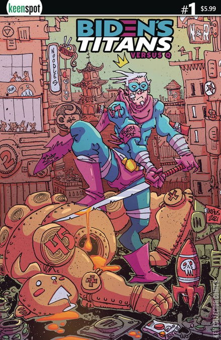 Face front, Q believers! After their bestselling first issue (even outselling Trump's Titans #1 by a tremendous margin, and that's not fake news!), Biden's Titans return in a senses-shattering all-new adventure that finds Joe, Kamala, and Pete so desperate to track down the secret identity of the mastermind known only as Q that they even team up with Bernie Sanders and The Superior AOC! When Joe discovers the truth behind the conspiracy that's captivated the weirdest parts of the internet, will he be able to comprehend it? C'mon, man! Includes bonus pull-out poster!