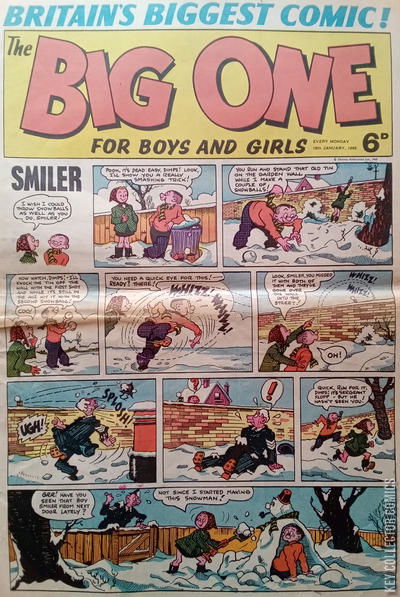 Home / IPC Magazines / Big One / Big One #14 IPC Magazines Released January 1965 Big One #14 Add to Collection Want It Synopsis No synopsis available. Issue 8 of 11 Add to Collection Buy it on eBay Buy on eBay Low $5 Mid $15 High $50 Synopsis No synopsis available. Details Series Big One Cover Date January 1965 Pages N/A UPC N/A Cover Price N/A Final Order Cutoff N/A Creators No creators listed. Price Guide Log in or subscribe to access detailed graded price information and market insights. Log In Subscribe