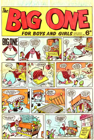 Home / IPC Magazines / Big One / Big One #19 IPC Magazines Released February 1965 Big One #19 Add to Collection Want It Synopsis No synopsis available. Issue 11 of 11 Add to Collection Buy it on eBay Buy on eBay Low $5 Mid $15 High $50 Synopsis No synopsis available. Details Series Big One Cover Date February 1965 Pages N/A UPC N/A Cover Price N/A Final Order Cutoff N/A Creators No creators listed. Price Guide Log in or subscribe to access detailed graded price information and market insights. Log In Subscribe
