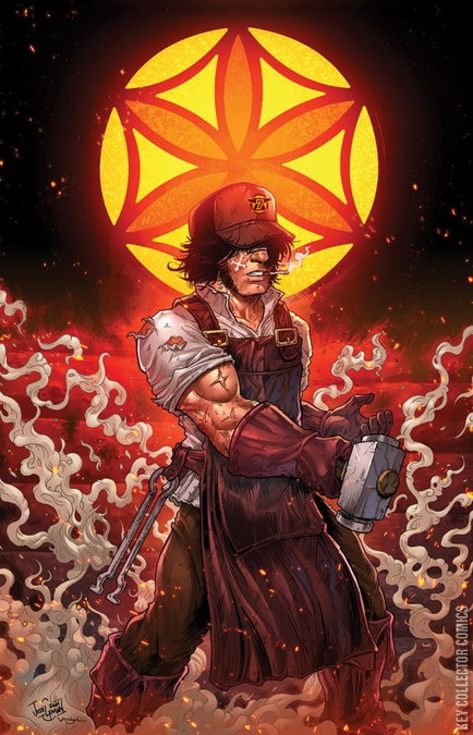 Double-length — collects chapters 1 & 2! Post Malone’s BIG RIG. THEY PRAYED FOR A MIRACLE. THEY GOT 25 TONS AND 18 WHEELS OF HOLY WEAPON. The Dark Ages…Demon hordes plague Europe as Hell invades Earth. The Six Petals, a secret sect of The Knights Templar, are in desperate need of a means to drive back the scourge and turn the tide of the onslaught. What crashes to earth is The Rig, a fully loaded tractor trailer. In the aftermath of its arrival, the only man left standing is an enigmatic former priest excommunicated from The Six Petals. He will become Trucker and lead the fight against Hell behind the wheel of a demon-slaying machine. Created by Post Malone. Written by Post Malone and Adrian Wassel. Drawn by Barbaric co-creator and Dark Knights of Steel artist Nathan Gooden.