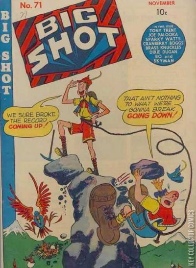 Home / Columbia / Big Shot / Big Shot #71 Columbia Released November 1946 Big Shot #71 Add to Collection Want It Synopsis No synopsis available. Issue 38 of 71 Add to Collection Buy it on eBay Buy on eBay Low $35 Mid $105 High $350 Synopsis No synopsis available. Details Series Big Shot Cover Date November 1946 Pages 52 UPC N/A Cover Price $0.10 Final Order Cutoff N/A Creators No creators listed. Price Guide Log in or subscribe to access detailed graded price information and market insights. Log In Subscribe