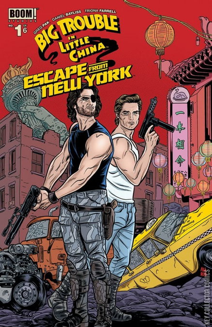 'It's the mother of all crossovers as Jack Burton and Snake Plissken meet for the first time ever anywhere!' Done with director John Carpenter's complete blessing, witness this melee of the mullets as two cult classic characters made famous by actor Kurt Russell crossover in an improbable adventure. As lightning cascades around Jack and his good ol' Pork-Chop Express, he finds himself transported and driving through the horrors of what seems to be the dystopian future of...Escape from New York.. Snake Plissken catches wind of Jack and goes on the hunt to find who is trying to steal his identity. Prepare for the road trip of a lifetime, with Jack and Snake rumblin' down the streets of a dystopian future to find what craziness caused Jack to jump through worlds. Written by Greg Pak (Totally Awesome Hulk, Action Comics) and illustrated by Russ Manning Award nominee Daniel Bayliss (Kennel Block Blues, Translucid).