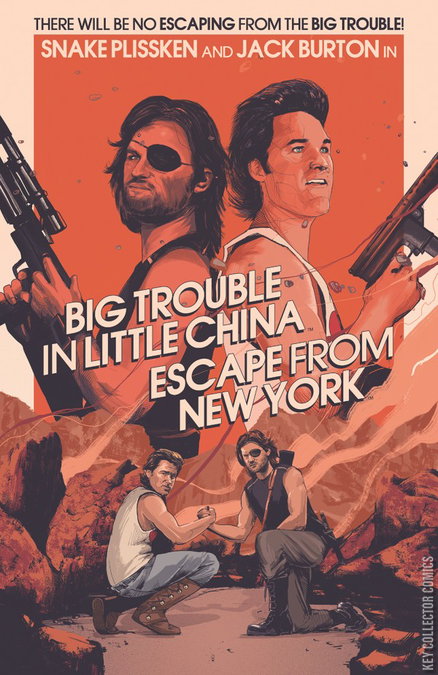 'It's the mother of all crossovers as Jack Burton and Snake Plissken meet for the first time ever anywhere!' Done with director John Carpenter's complete blessing, witness this melee of the mullets as two cult classic characters made famous by actor Kurt Russell crossover in an improbable adventure. As lightning cascades around Jack and his good ol' Pork-Chop Express, he finds himself transported and driving through the horrors of what seems to be the dystopian future of...Escape from New York.. Snake Plissken catches wind of Jack and goes on the hunt to find who is trying to steal his identity. Prepare for the road trip of a lifetime, with Jack and Snake rumblin' down the streets of a dystopian future to find what craziness caused Jack to jump through worlds. Written by Greg Pak (Totally Awesome Hulk, Action Comics) and illustrated by Russ Manning Award nominee Daniel Bayliss (Kennel Block Blues, Translucid).