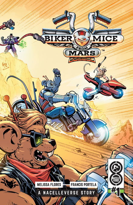 MARS! MICE! MOTORCYCLES! The next epic chapter of the Nacelleverse starts NOW with an ALL-NEW, ALL-ADRENALINE ADVENTURE for the free-wheelin’, butt-kickin’ animation icons who ride the Red Planet’s hardest roads! Rocketing out of the pages of NacelleVerse #0 . . . the ‘90s cartoon sensation is back in a brand-new comic book series from red-hot writer Melissa Flores (Mighty Morphin’ Power Rangers, Spider-Gwen: Smash) and Eisner Award–nominated artist Francis Portela (Green Lantern)! Best friends Throttle, Modo, and Vinnie were just three anthropomorphic, motorcycle-riding mice who called Mars home . . . and were always bad to the bone. But when the ruthless Plutarkians stage a mass invasion to strip their planet of its precious resources, their antiauthoritarian streak is going to turn into a full-blown insurgency. Only the Biker Mice from Mars can prevent the mass destruction of Earth’s neighbor . . . and the freedom of our entire solar system may just hang in the balance. Leading into the upcoming animated series by executive producers Brian Volk-Weiss, Cisco Henson, Matt Kravitsky, and Michael Goodman from the Nacelle Company, Maximum Effort's Ryan Reynolds, George Dewey, Kevin Hill, and Ashley Fox, as well as Fubo's David Gandler and Pamela Duckworth, the summer's most anticipated return revs up the action as a never-before-told chapter of Biker Mice history stands revealed! MARS WAR starts now!