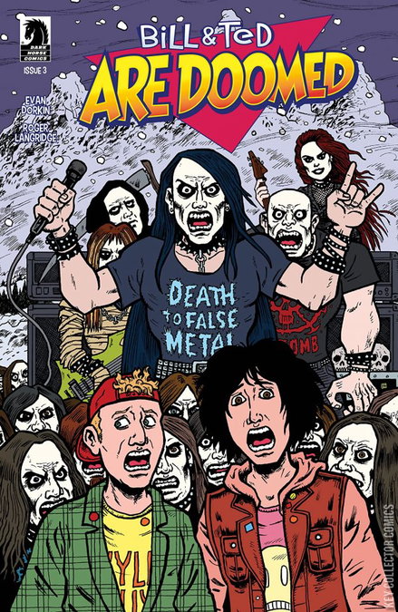 With the launch of their world music tour in chaos, Bill and Ted manage to escape a rioting death metal festival only to be marked for death by the insane leader of an evil metal band. With thousands of evil metal fans on a wild hunt for our heroes, can the Wyld Stallyns survive long enough to write the One Song on tour and save the future?! This new series is a direct sequel to Bogus Journey and prequel to Face the Music bringing back legendary Bill and Ted comics writer Evan Dorkin and acclaimed artist Roger Langridge
