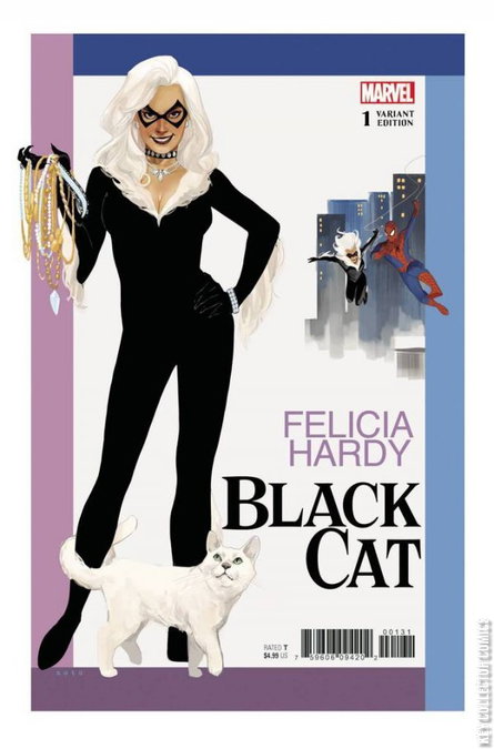 THIEVES LIKE US Spinning out of the pages of THE AMAZING SPIDER-MAN comes an all-new ongoing series! The Black Cat is back and starring in her first ever ongoing series! Felicia Hardy has a taste for the finer things in life and a certain set of skills that can get her into any mansion, vault or museum to…procure said finer things. But due to her actions in Amazing Spider-Man, Felicia’s not only on the run from the police but also by the New York Theives Guild and their boss Odessa Drake! High-octane heists, climactic chases and twist after twist that will keep you on the edge of your seat like a cat on a perch. In this issue: Find out a secret from Cat’s past in a bonus story that sets a foundation for the future! All this and an all-new Marvel Meow short story by Nao Fuji!