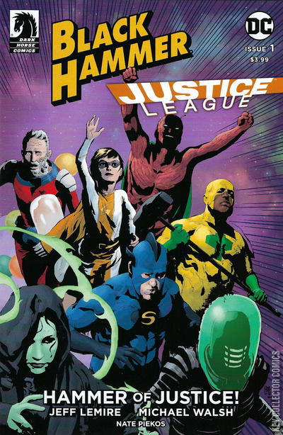 DC Comics and Dark Horse Comics present the ultimate superhero crossover event of 2019! A strange man arrives simultaneously on Black Hammer Farm and in Metropolis, and both worlds are warped as Starro attacks! Batman, Green Lantern, Flash, Wonder Woman, Superman, and more crossover with Golden Gail, Colonel Weird, and the rest of the Black Hammer gang!