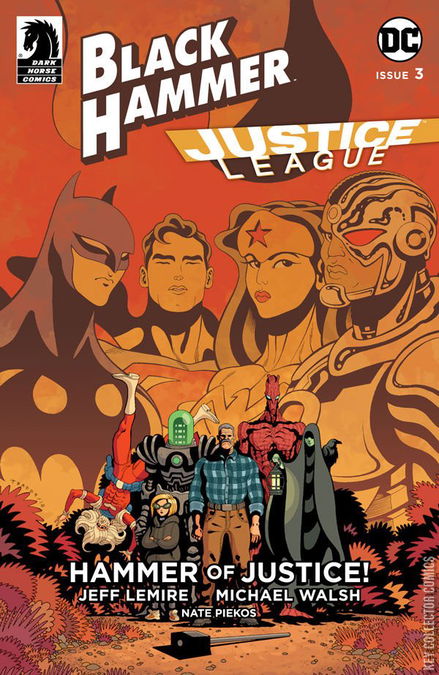 Dropped into the DC universe, the Black Hammer heroes find themselves captured by members of the Justice League who blame them for the cosmic switch—and on the Black Hammer Farm, the displaced DC heroes search for answers and a way out of their bucolic prison. But Colonel Weird and the Green Lantern discover that the solution to this riddle may not be so simple.