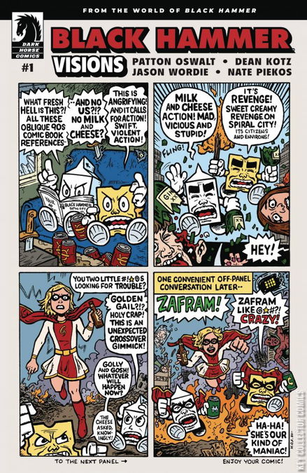 An exciting reimagination of the Eisner Award-winning Black Hammer series told by guest writers and artists such as Patton Oswalt, Geoff Johns, Mariko Tamaki, Chip Zdarsky, Kelly Thompson, and more of comic's top talents! Patton Oswalt joins artists Dean Kotz and Jason Wordie to explore the life of youthful super heroine Golden Gail on the Black Hammer Farm before the beginning of Black Hammer #1, and her struggle to maintain sanity as a middle-aged woman trapped in the unchanging body of a superpowered grade-schooler.