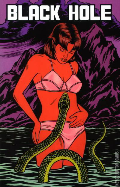 The seventh, "nice" issue of Charles Burns's dark and forbidding tale of adolescence and physical mutations marks the midway point of Black Hole. Two new chapters flow ominously from Burns's heavy pen: In "Under Open Skies" Chris and her boyfriend Rob skip school and drive out to the ocean for a romantic day together during which they profess their love for each other. The tiny mouth on Rob's chest starts spouting cryptic messages, turning the whole day dark. "The Woods" shows Chris flashing back to the events that happened after the "Under Open Skies" chapter. Chris runs away from home and begins to live with Rob and his disfigured friends in the woods. She has an encounter with the same creepy guy we've seen in previous issues and freaks out. Burns proves he is a dominant force of graphic mastery and horror storytelling in the world today.