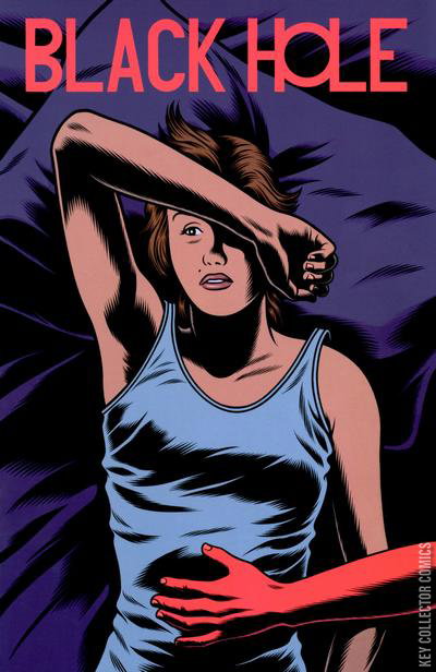 A shadowy life spews forth from Harvey Award winning Charles Burns' dark pen once again, filling the page with an angst-ridden story of survival in a self-created civilization. Left alone in the woods to fend for herself, Chris finds hunger overwhelming and the wait for her boyfriend Rob doubly trying. Newly deflowered Keith takes her away from the cold tent and into his house. Everyone wonders why he's being so nice...Black Hole is probably the best portrayal of the uncertainty and desire of teenagers ever.