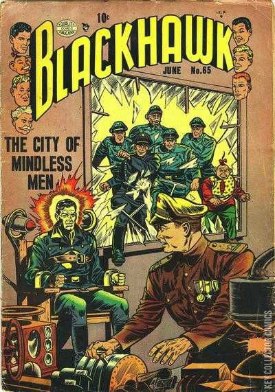 Home / DC / Blackhawk / Blackhawk #65 DC Released June 1953 Blackhawk #65 Add to Collection Want It Synopsis No synopsis available. Issue 58 of 265 Add to Collection Buy it on eBay Buy on eBay Low $10 Mid $30 High $95 Synopsis No synopsis available. Details Series Blackhawk Cover Date June 1953 Pages N/A UPC N/A Cover Price N/A Final Order Cutoff N/A Creators Artist Reed Crandall Inker Chuck Cuidera Price Guide Log in or subscribe to access detailed graded price information and market insights. Log In Subscribe